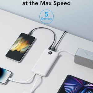 【Charge 5 Devices Simultaneously】Total 5 output ports (built-in 3 cables,USB A and USB C port), supports charging for 5 smart devices simultaneously with each max 5V/2.4A output, save you time and no more waiting.