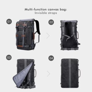 Convertible Backpack : This canvas travel backpack can be used as backpack, tote bag, and crossbody bag with a shoulder strap; And there is a zipper pocket on the backside that you can hidden the backpack strap when you carry this bag as tote bag or crossbody bag. Without puzzle of having those backpack strap hanging uninhibitedly.