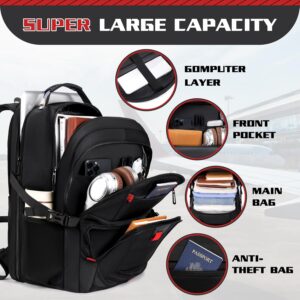 ☀️【Large Capacity & Organization】: Extra large Travel Laptop Backpack 50L Total more than 10 pockets. The big backpack has 3 spacious compartments, TSA compartment for 17.3 inch laptops, main compartment for coats, folders, travel supplies and others. The front pocket of big backpack for men can hold keys, pens, notebooks. Travel Backpack 2 side pockets for bottle and umbrella, anti-theft pocket on back concealed and secure.