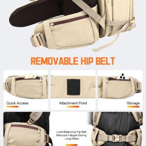 【Removable Waist Belt】Reduce fatigue! Blends the benefits of a hiking backpack with a travel-ready design. Helps distribute weight evenly to the hips, relieving shoulder pressure